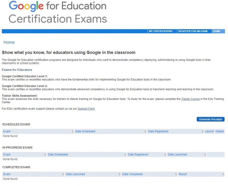 인증시험은 Google 도구의 핵심적인 기능을 다루는 Educator Level 1과, 조금 더 심화된 Educator Level 2로 나누어지고, 더 나아가서는 Trainer, Innovator 등급의 시험도 있었습니다.