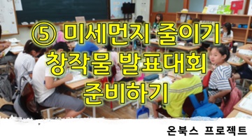 그점에 착안하여, 우리 학급에서도 온북스 프로젝트의 산출물로 '미세먼지 줄이기 창작물 발표대회'를 실시하기로 하였습니다.