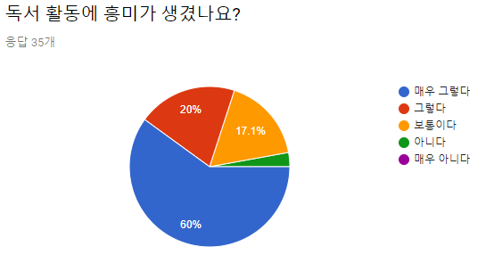 온북스 프로젝트를 실시한 결과를 살펴보기 위해 마지막으로 사후 검사를 실시하고 학생들이 3주간 어떤 변화를 얻게 되었는지 살펴보았더니, 재미가 없었던 독서활동이 흥미있고 책의 주제였던 미세먼지에 대한 내용도 새롭게 알게 되었다는 내용이 많았습니다.